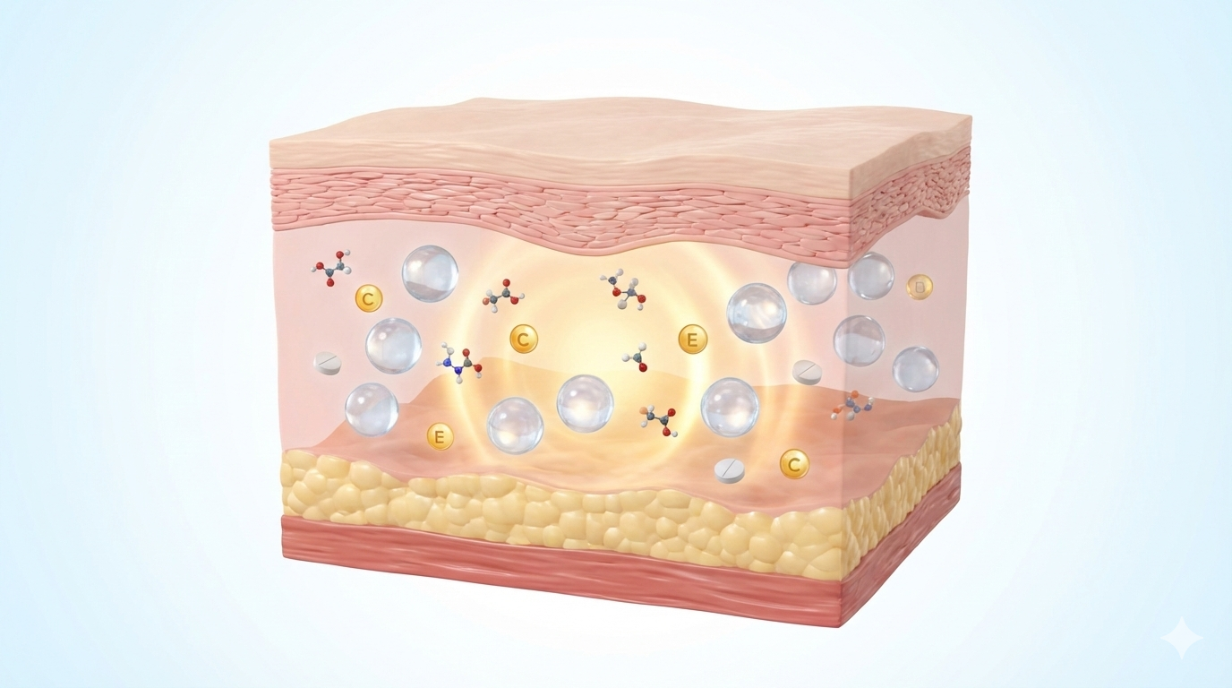 الفكرة ليست “مكوّن واحد سحري”، بل تركيبة متكاملة تستهدف عدة جوانب من جودة الجلد.